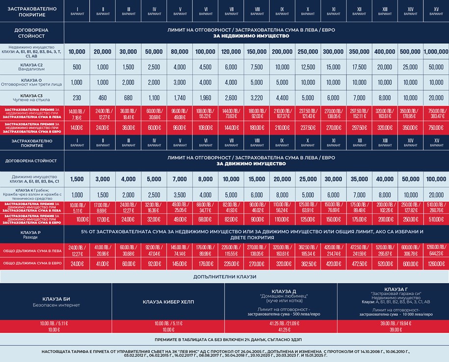 Може да изберете различни варианти на покритие, което да отговаря на Вашите нужди и да защити недвижимото и движимото си имущество.