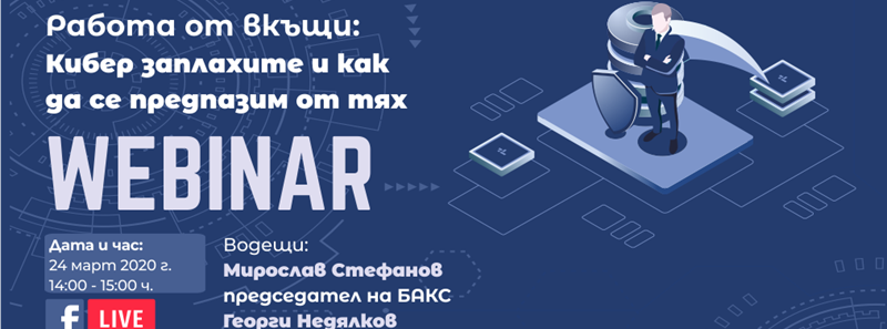 Специалистите от Българска асоциация по Киберсигурност с подкрепата на Съюз за стопанска инициатива и Застрахователна компания Лев Инс АД, организират безплатен уебинар на тема „Работа от вкъщи: Кибер заплахите и как да се предпазим от тях“.